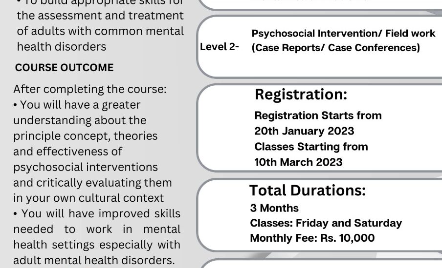 Psychosocial Interventions: A Mental Health Approach for Adults – Certificate Course