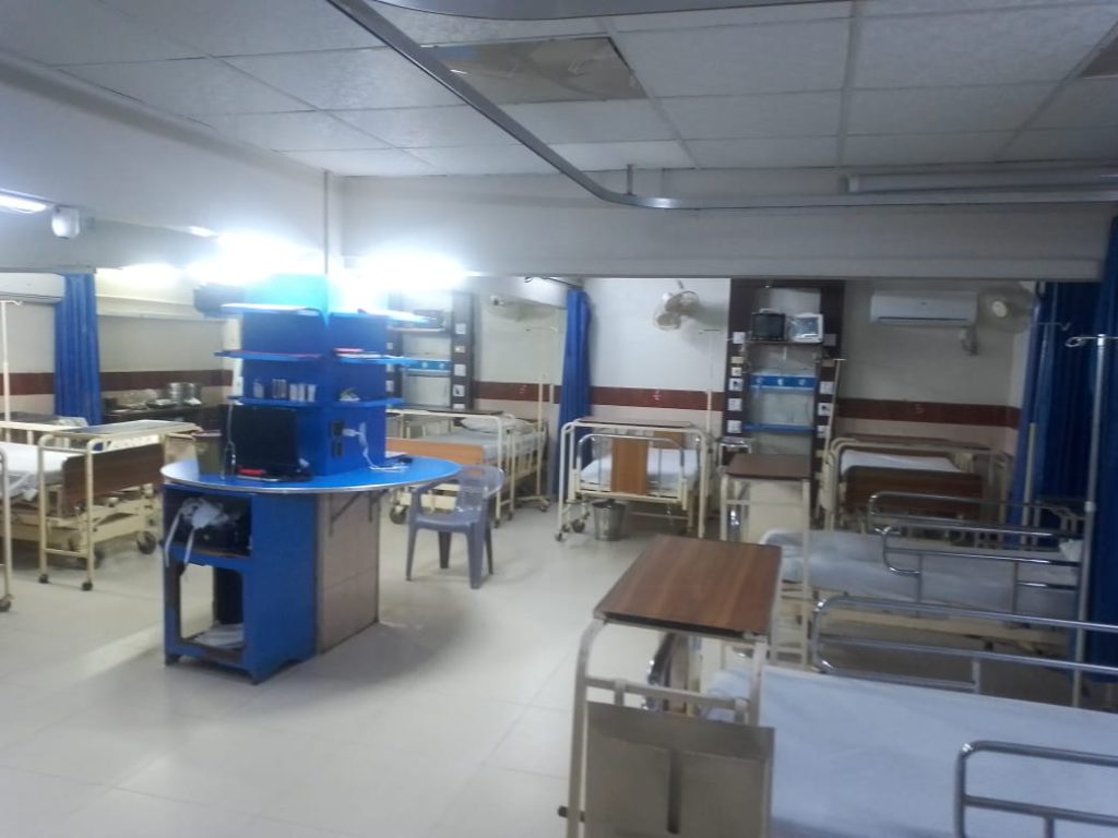 All patients in need of high nursing care and close monitoring are admitted in this ward. This is also equipped with cardiac monitors & provides the best of care to critically ill patients. It also includes an isolation unit, especially for Burns patients.